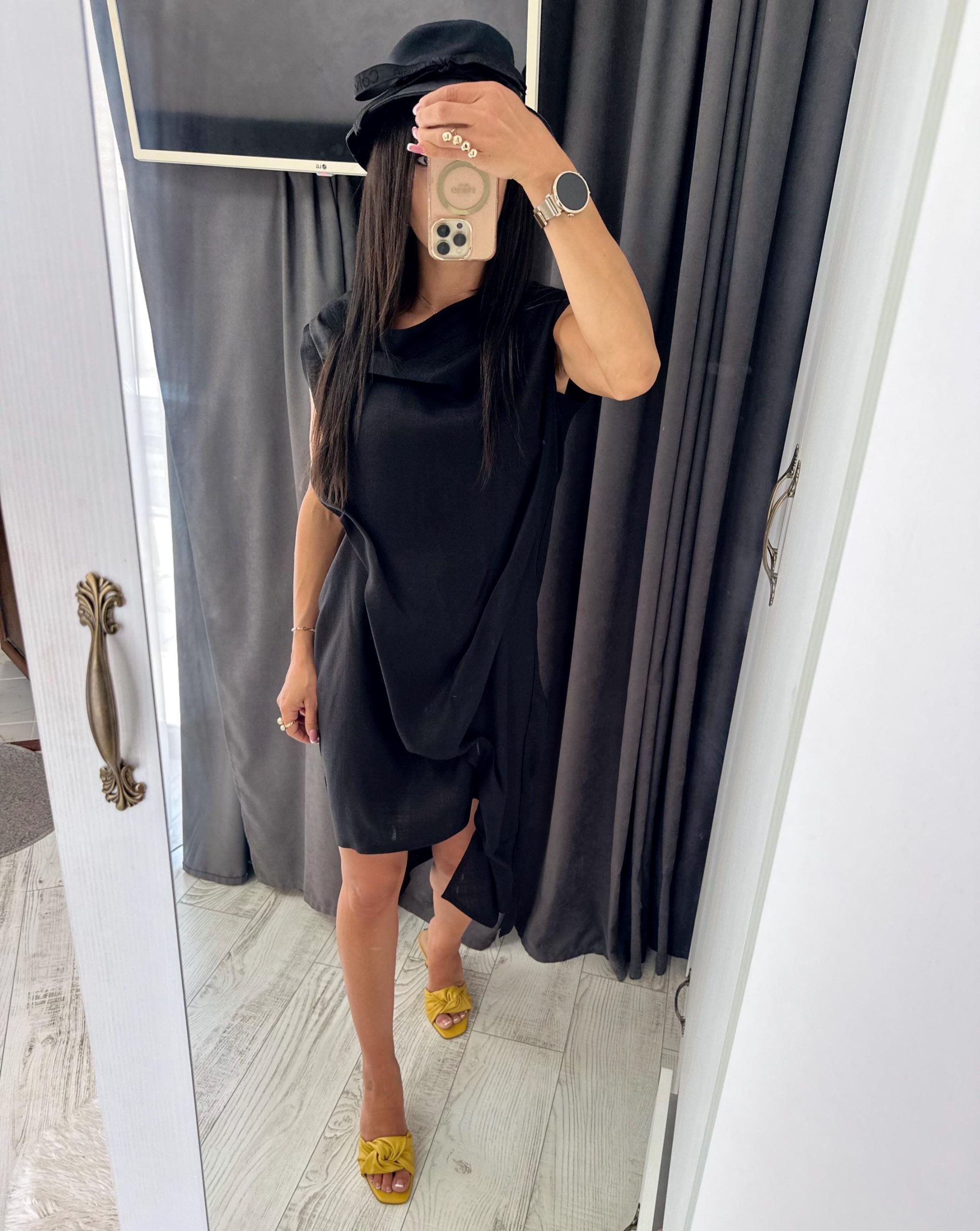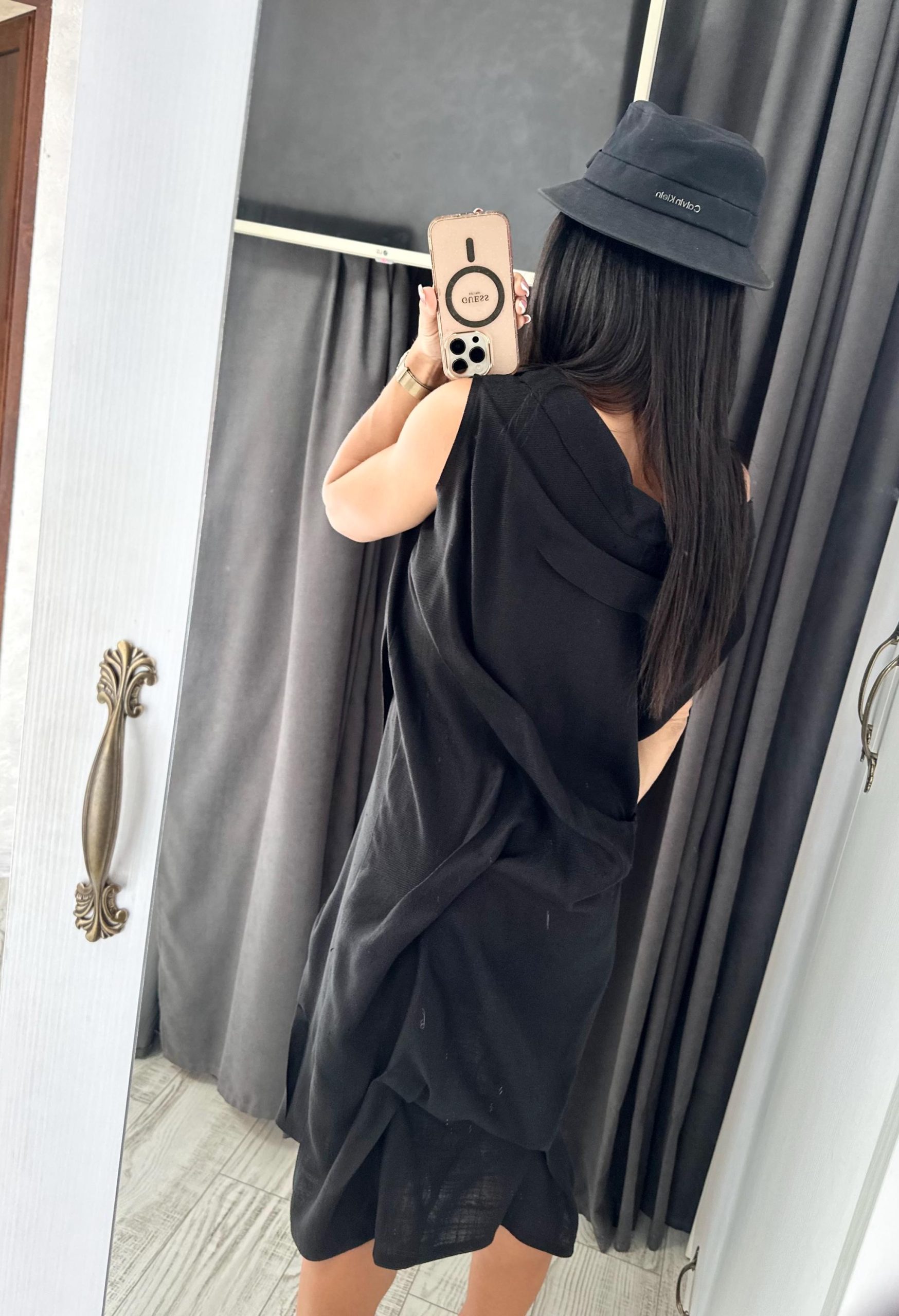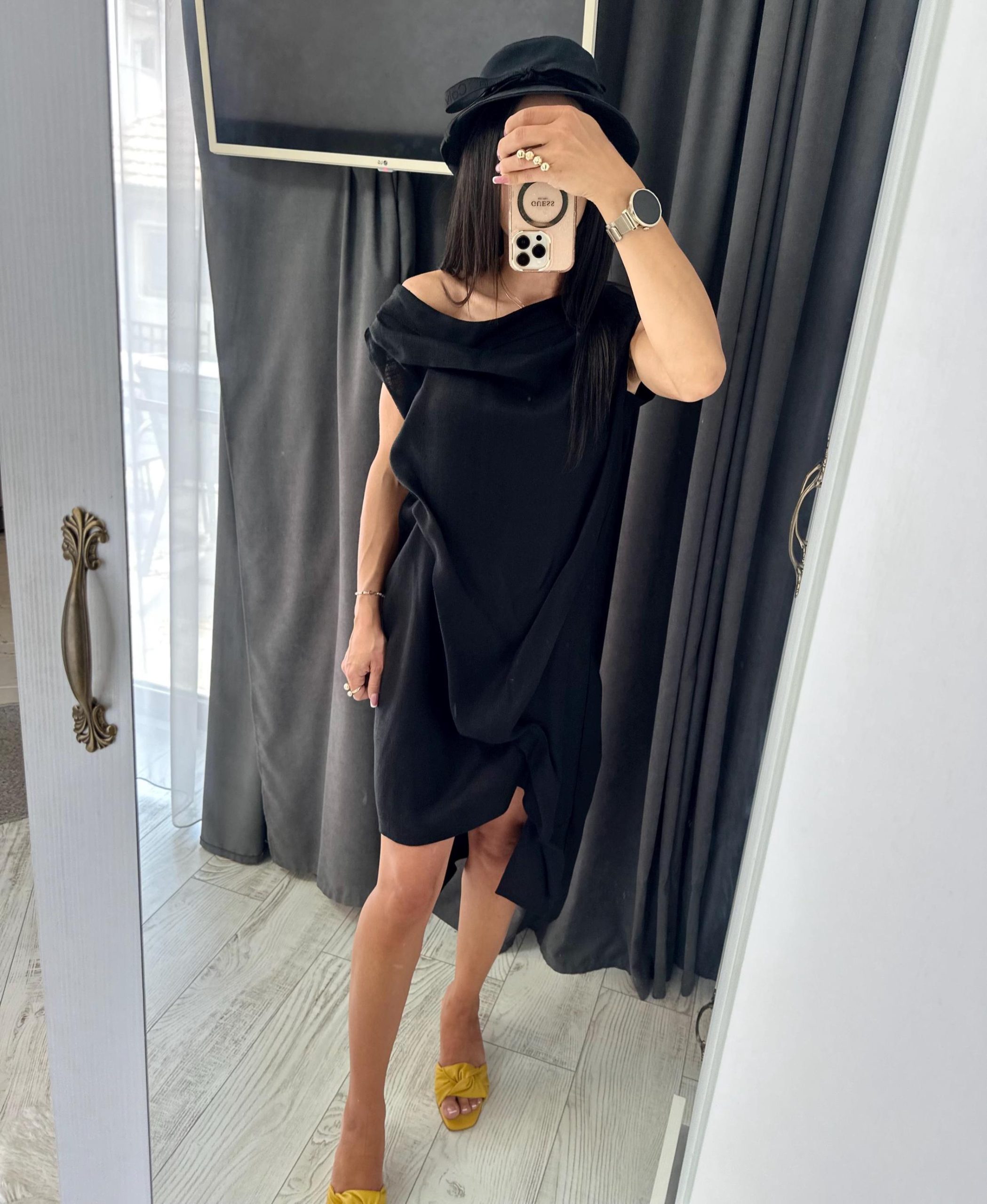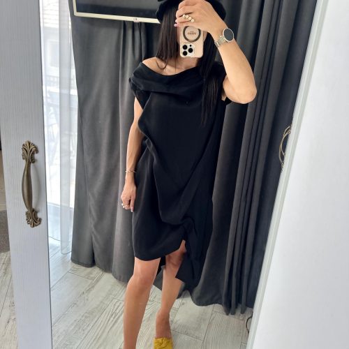 Extravagant black asymmetrical linen dress, suitable for your summer party days, extremely comfortable and convenient linen dress for women