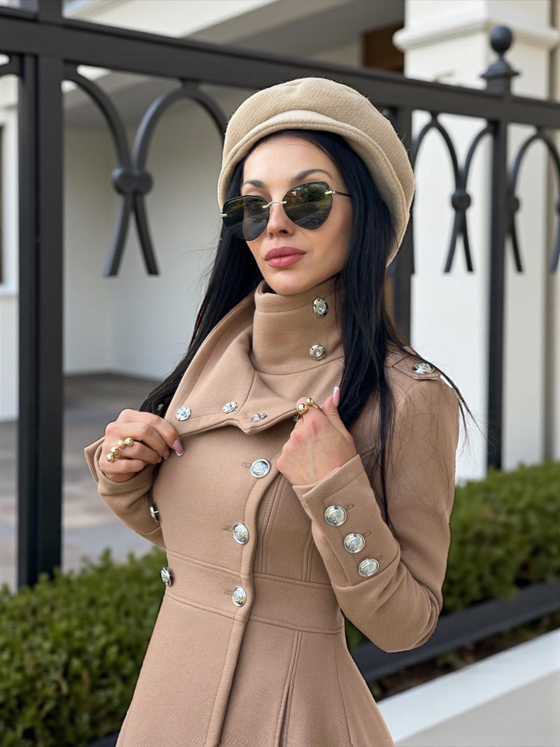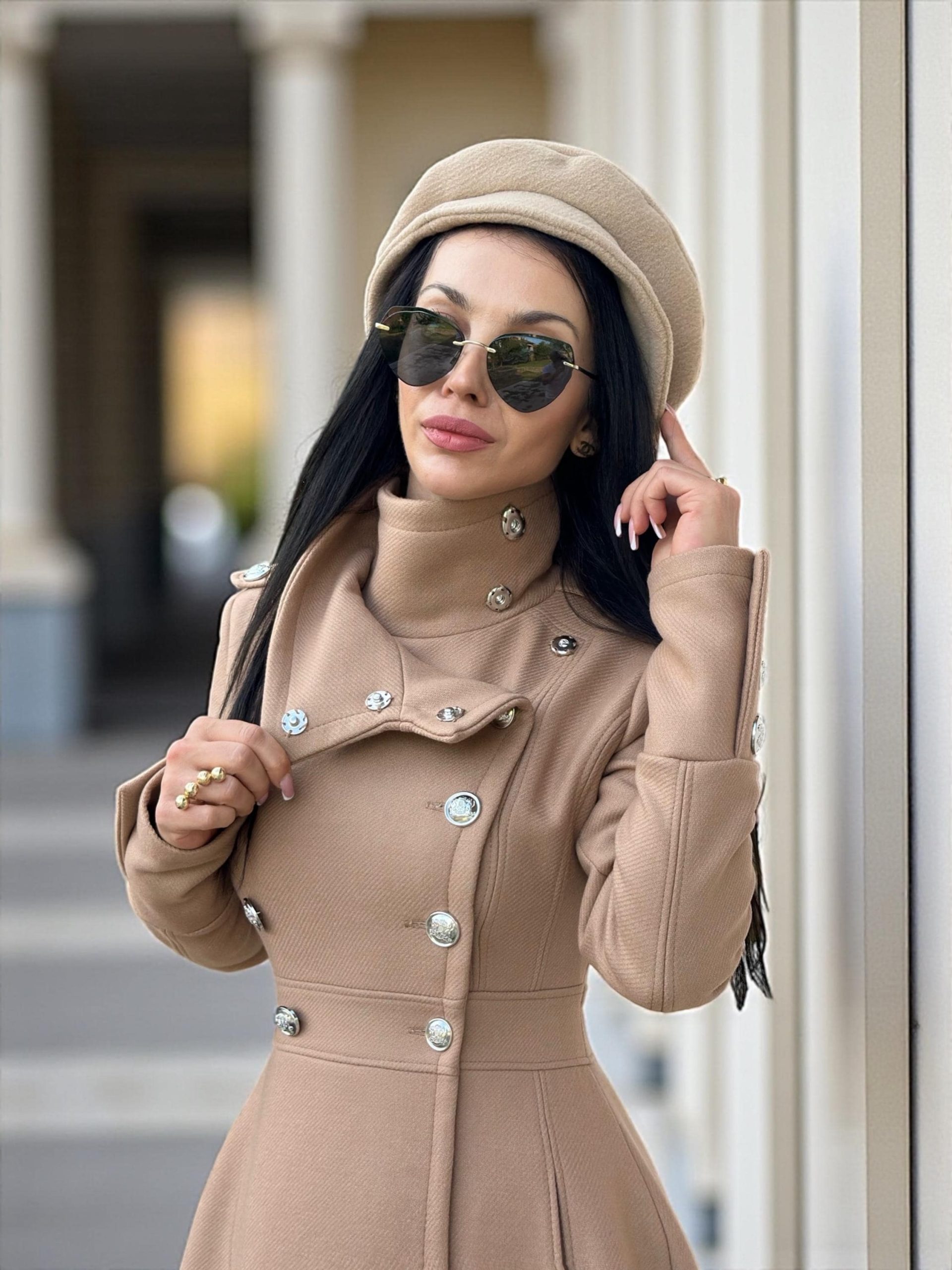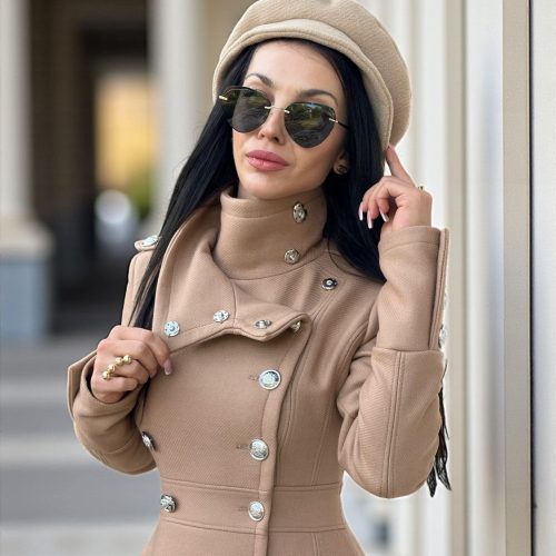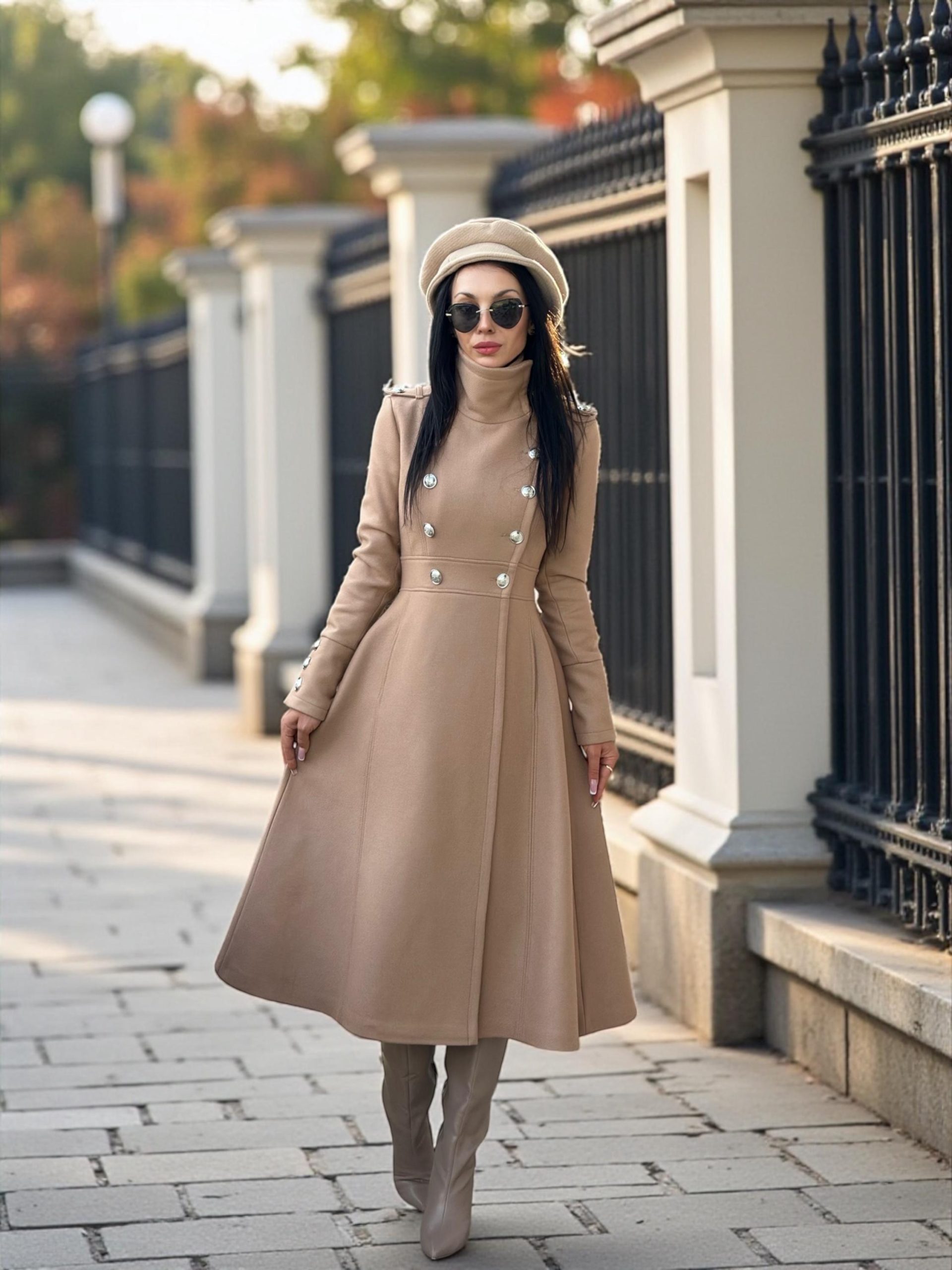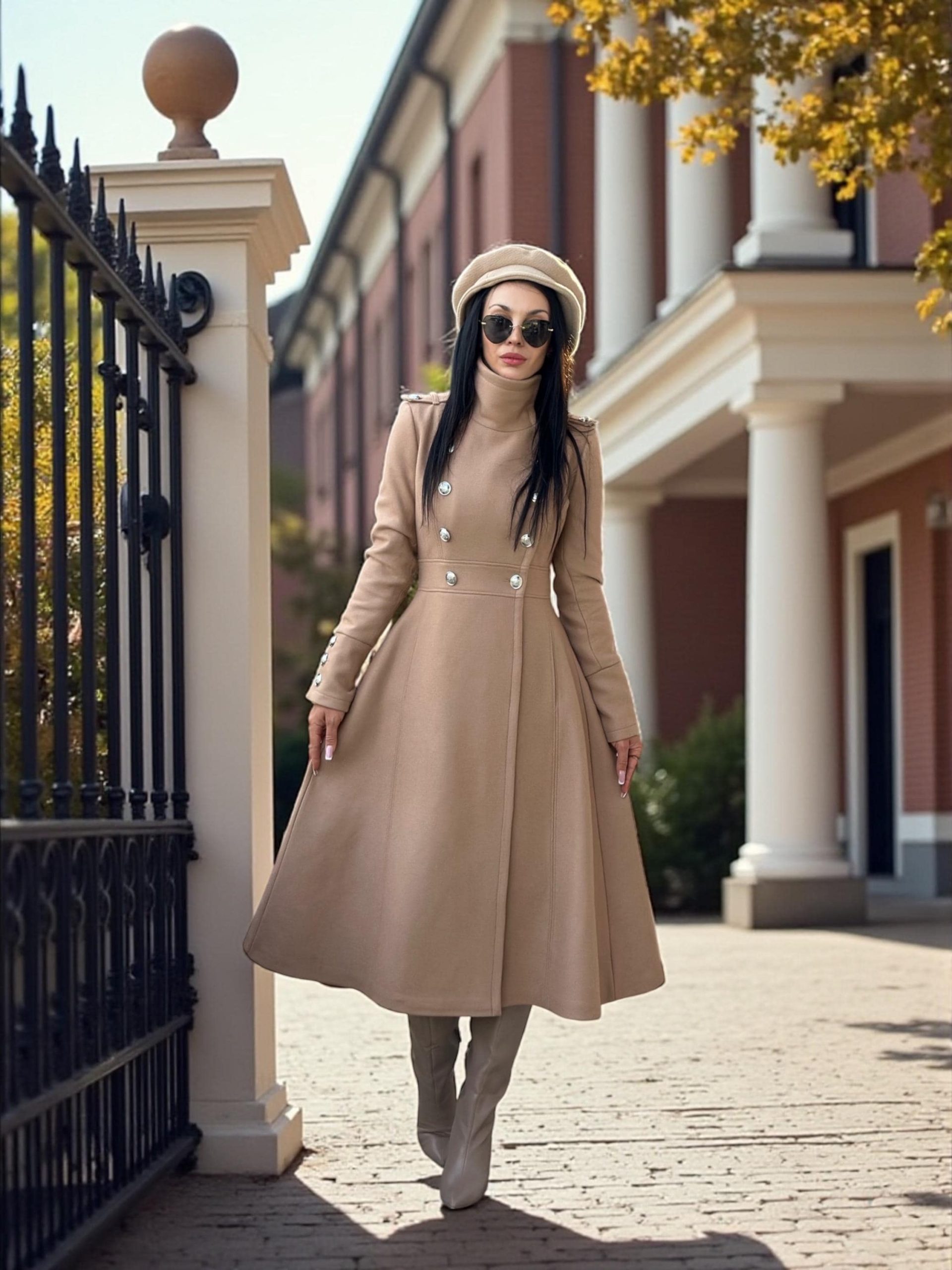 Long Camel Wool Coat For Women Elegant Double