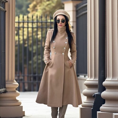 Long Camel Wool Coat For Women Elegant Double