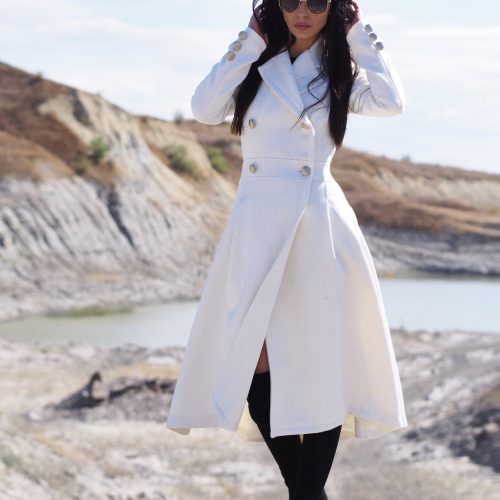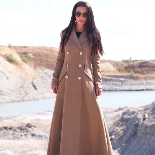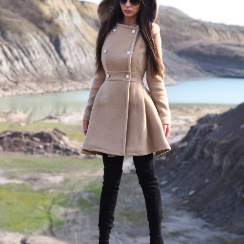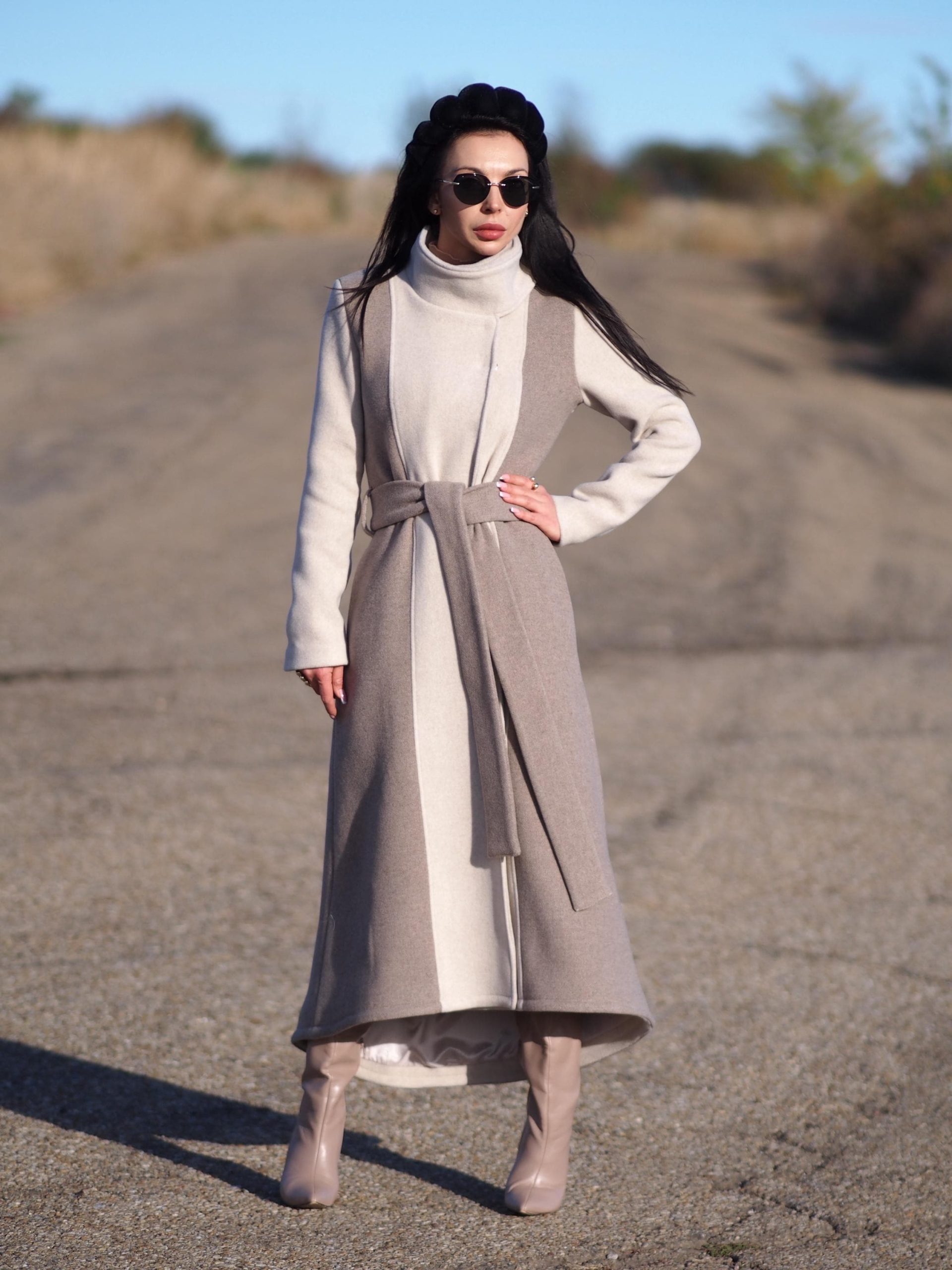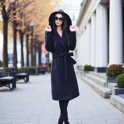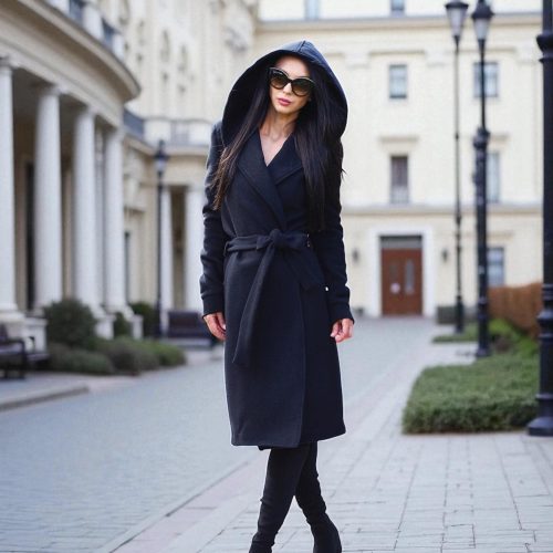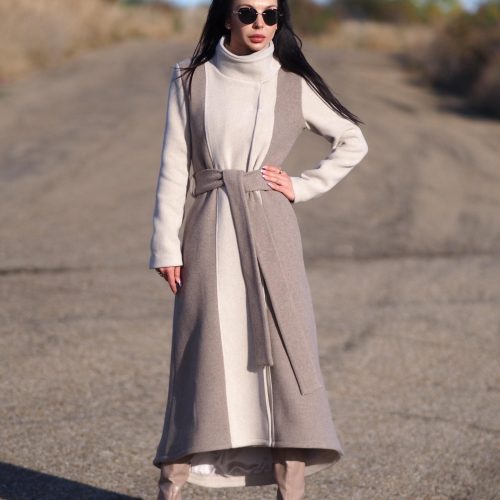 Featuring a graceful long silhouette, structured high collar, and a belted waist, this piece blends comfort, warmth, and modern design a true statement for the cold season.