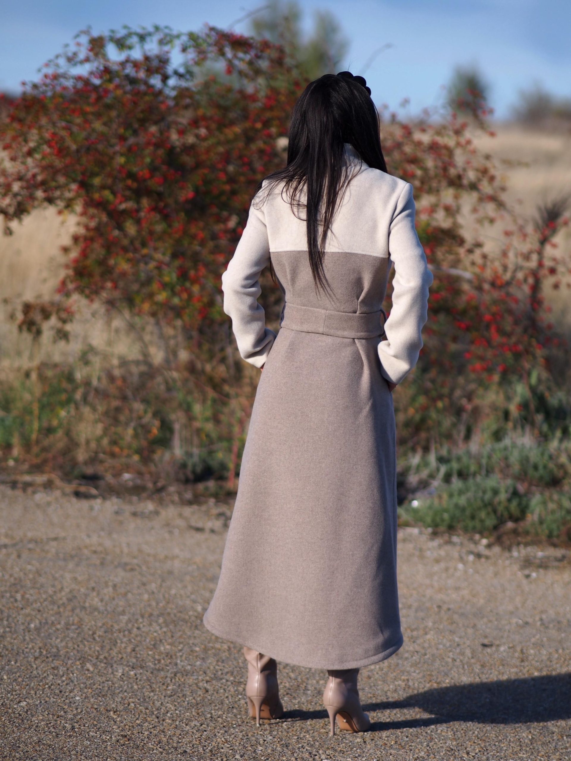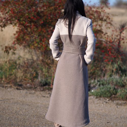 Wrap yourself in elegance and sophistication with this luxurious two-tone wool coat, meticulously handmade in our atelier.
